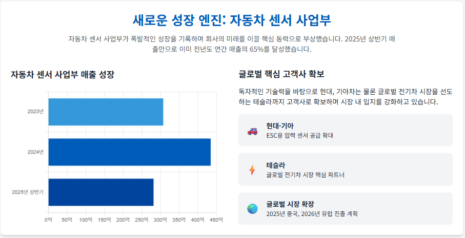 이처럼 기존 사업 부문이 견조한 실적을 유지하며 안정적인 현금 흐름을 창출하는 것은, 신사업인 자동차 센서 부문이 더욱 과감하게 시장을 개척할 수 있는 자금력과 기반을 제공한다는 점에서 매우 중요한 의미를 가집니다.