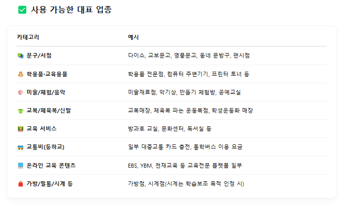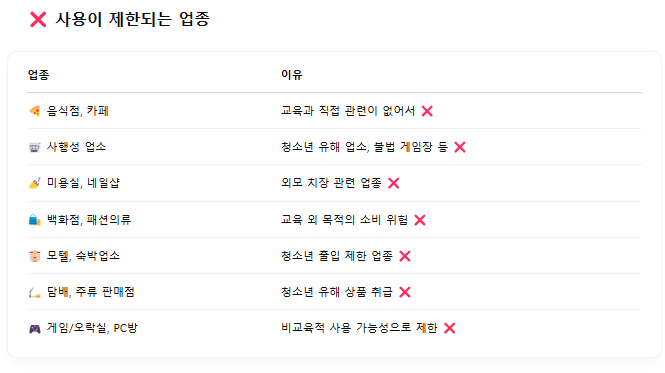 - 바우처는 정해진 교육용도에만 사용 가능 (유흥업소 등 제한)