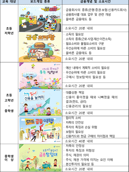 금융감독원 「금융교육 보드게임 종류 및 개요」