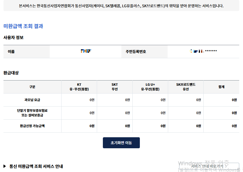 이통 3사 및 알뜰폰 사업자의 미환급금까지 통합 조회가 가능합니다.