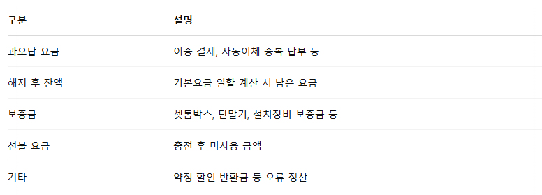 이 과정에서 요금을 중복 납부하거나, 해지 이후 남은 요금이 미처 정산되지 않는 경우, 환급금이 생길 수 있습니다.