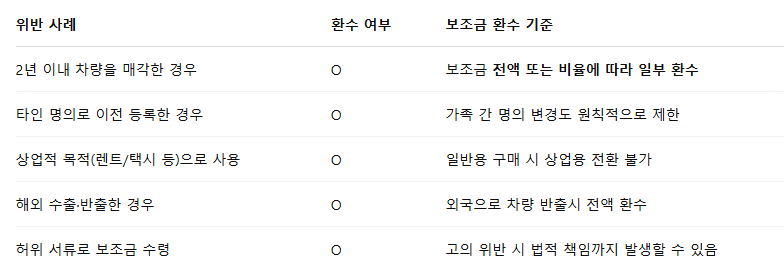 특히 보조금 받고 차량을 팔거나 이전하려면, 의무 보유기간을 꼭 확인해야 합니다.모르고 위반했다가 수백만 원을 환수당하는 일이 없도록,