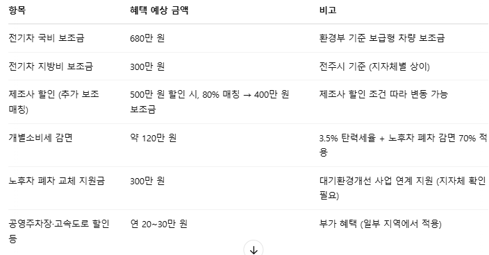 전기차 보조금, 개별소비세 감면, 노후차 교체지원금 등 다양한 혜택이 중복 적용되며,